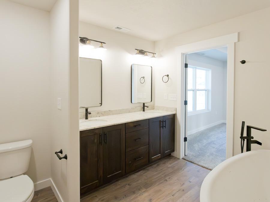 Upstairs, all four bedrooms and three full bathrooms are tucked away for optimal privacy and a clutter-free main floor. The luxurious primary suite showcases elegant tray ceilings, a freestanding soaking tub, and a tiled shower in the private ensuite bathroom.